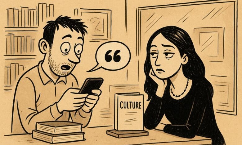 Dans certains cercles, être cultivé, c’est savoir citer Nietzsche sans le comprendre, ou dire “je lis du Nizar Kabbani” en croyant que c’est un café de Casablanca. La culture est devenue un accessoire de standing, un badge de distinction pour les dîners mondains : on la porte comme une montre de luxe, juste assez visible pour briller.