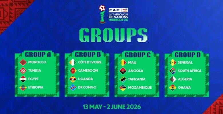 Le tirage au sort de la phase finale a réparti les équipes en quatre groupes. Le Maroc, pays hôte, évoluera dans le groupe A aux côtés de la Tunisie, de l’Égypte et de l’Éthiopie. Le groupe B comprend la Côte d’Ivoire, le Cameroun, l’Ouganda et la RD Congo.