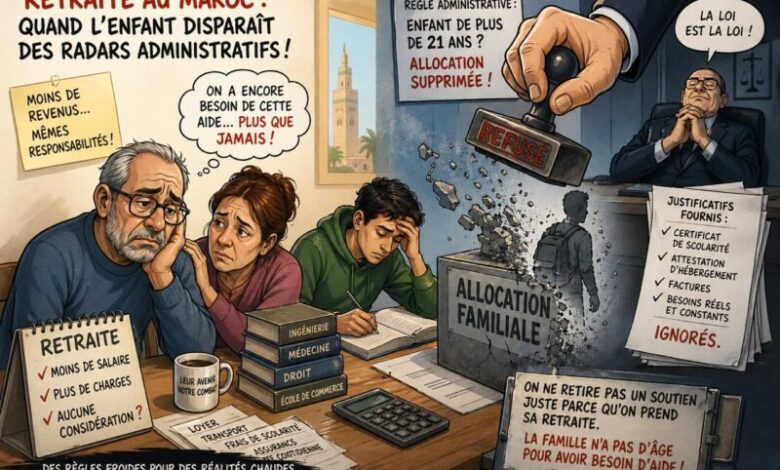 Il y a des moments dans la vie où l’on bascule doucement d’un statut à un autre. Actif, puis retraité. Utile, puis… apparemment moins utile. Mais ce que personne ne vous dit, c’est qu’au Maroc, ce passage s’accompagne parfois d’un phénomène presque magique : vos enfants cessent, administrativement parlant, d’exister.